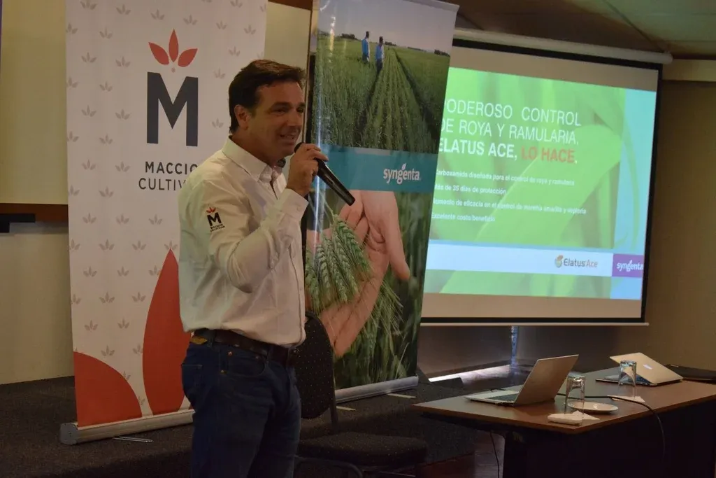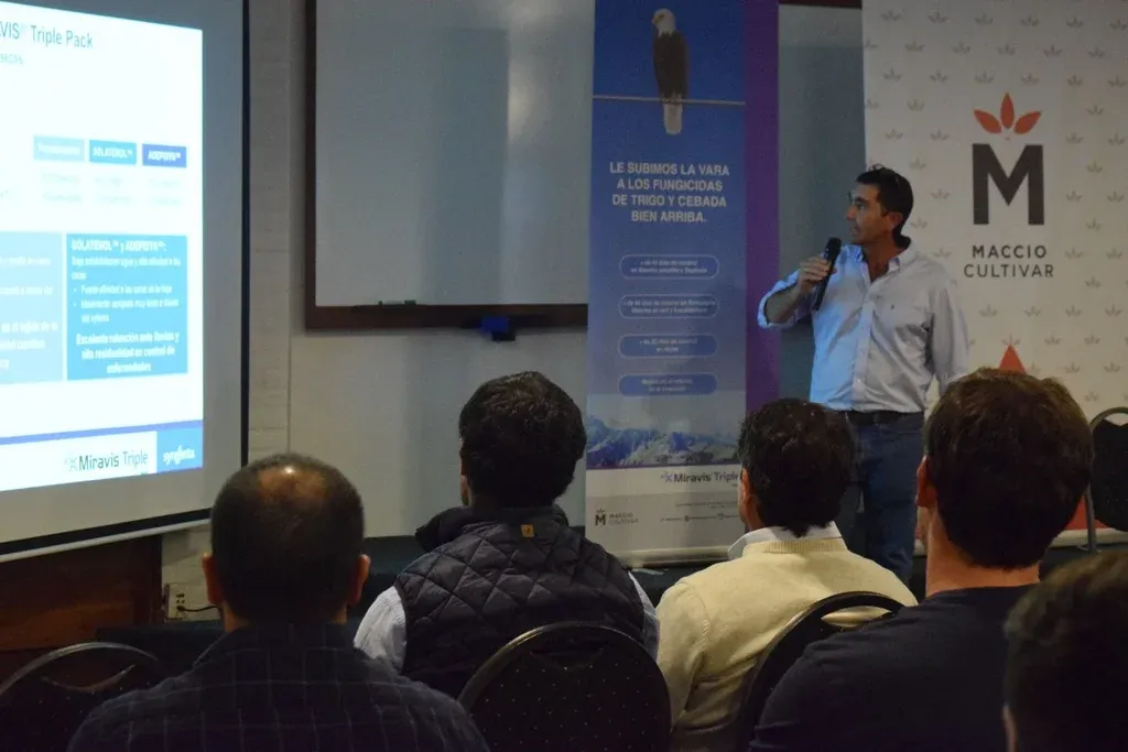 Como se adelantó, se presentó un nuevo fungicida para trigo y cebada, Miravis Triple Pack, con excelentes resultados de control de enfermedades con base en lo que presentaron Carlos Pérez y Nicolás Faggi.