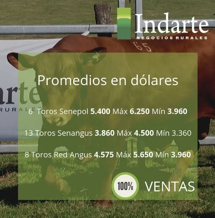 En la jornada de este viernes 27, Indarte & Cía le bajó el martillo a los 28 reproductores Senepol, Senangus y Angus colorados de pedigrí de la cabaña El Cerro.