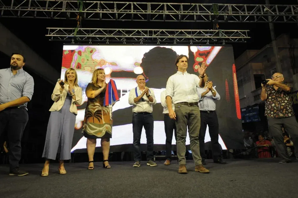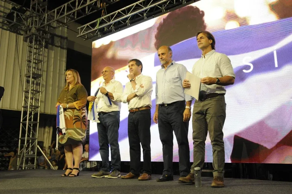 Luis Lacalle Pou esperó algunos segundos para iniciar su discurso. Miraba desde el escenario las decenas de banderas uruguayas que se mezclaban en Las Piedras con las del Partido Nacional, Colorado, Independiente, Cabildo Abierto y de la Gente. Como la tradición se lo indica, el candidato nacionalista cerró su campaña hacia el próximo domingo junto a Beatriz Argimón en la ciudad donde comenzó su carrera política. Había una diferencia con los actos de cierre de la interna y las nacionales del 27 de octubre. Junto a la fórmula blanca, Edgardo Novick, Ernesto Talvi, Pablo Mieres e Irene Moreira eran protagonistas del acto de cierre.