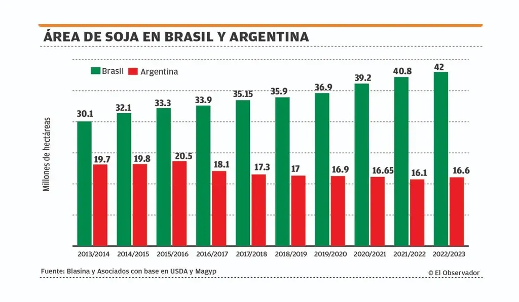 A la vez, la superficie cultivada en Brasil crecería 3%, agregando 1,2 millones de hectáreas para llegar a 42 millones.