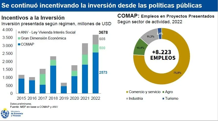 Por otro lado, sostuvo que el año pasado la Comap recibió proyectos de inversión por US$ 2.573 millones. “Más allá de la inversión grande de UPM, es una cifra muy significativa del resto del sector privado. Estos proyectos estarían generando unos 8.200 empleos de implementarse la totalidad”, indicó.