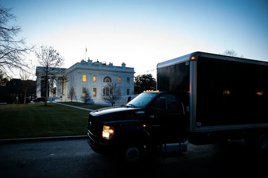 11.18. Más temprano, al amanecer, un camión de mudanza de Trump salía de la Casa Blanca en el día del cambio de mando.