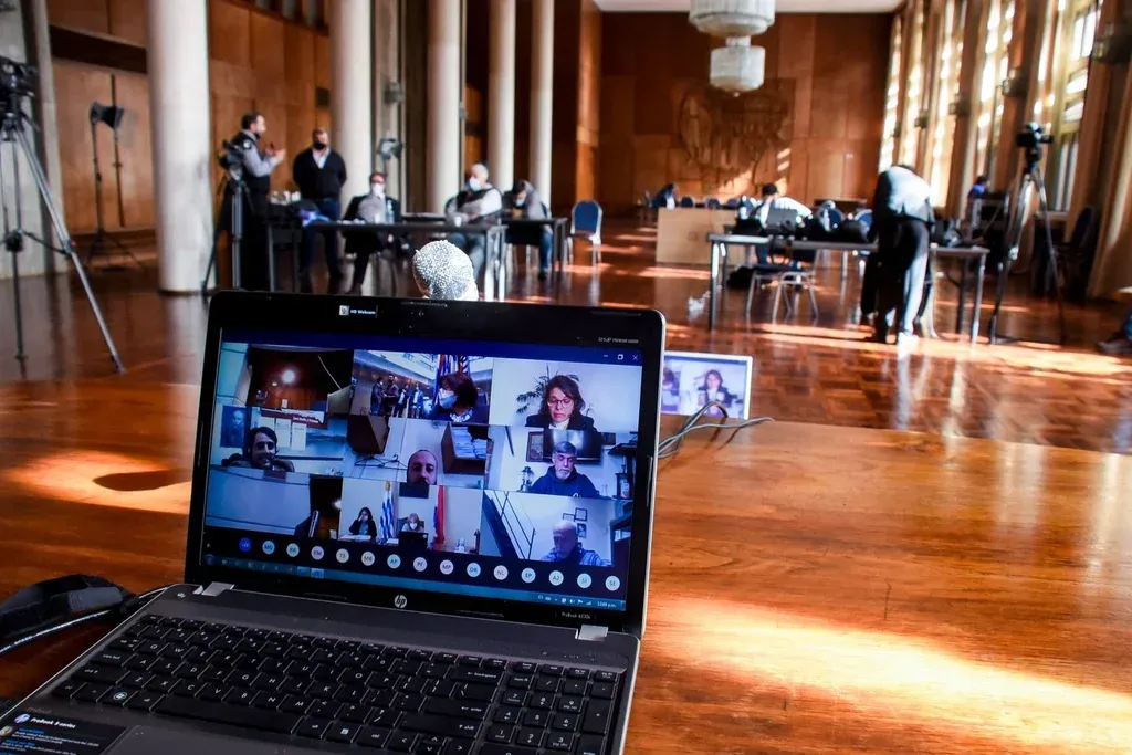 "¿El resto nos está viendo?", preguntó el edil nacionalista Javier Barrios Bove desde un cuadrado en la pantalla. "Vemos y escuchamos perfectamente", le respondieron desde otro punto del monitor. "Yo te veo pero no te escucho", le espetó un tercero. "Ahora sí lo vemos", le indicaron. "Yo sigo sin verlo", confesó otro de los participantes del encuentro vía Microsoft Teams.