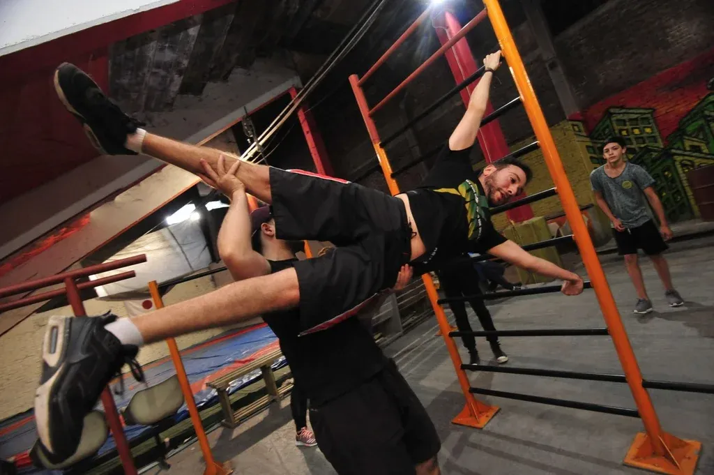 Florencia tiene 24 años; contó que antes de comenzar a practicar este deporte –hace siete meses– el único ejercicio que hacía era ir, de tanto en tanto, a una clase de zumba. Eso no impidió que ahora sea de las alumnas que mejores destrezas desarrollan y pueda hacer dominadas en barra con una facilidad que al comienzo le resultaban casi imposibles.