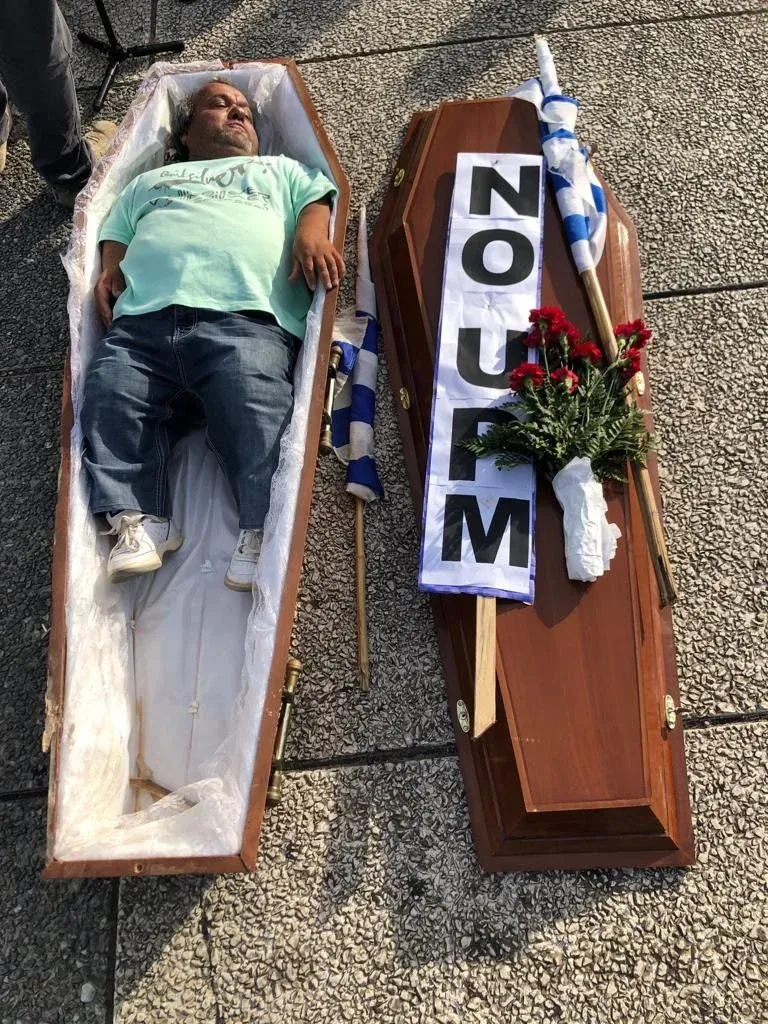 Hugo, un enano que también vino desde Fray Marcos, se metía en el ataúd abierto para que le saquen fotos como si estuviera muerto. Sobre la tapa del féretro había un cartel con letras negras decía "No UPM".