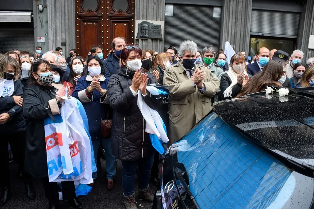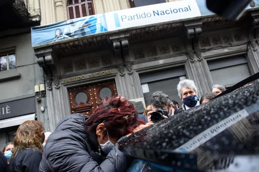 Pasadas las 11 de la mañana, la arenga de una militante hizo que estallara un primer aplauso. El segundo llegó sobre el mediodía, cuando la multitud acompañó el féretro hasta la escalinata donde esperaba el coche fúnebre, para partir esta vez hacia la casa del Partido Nacional.