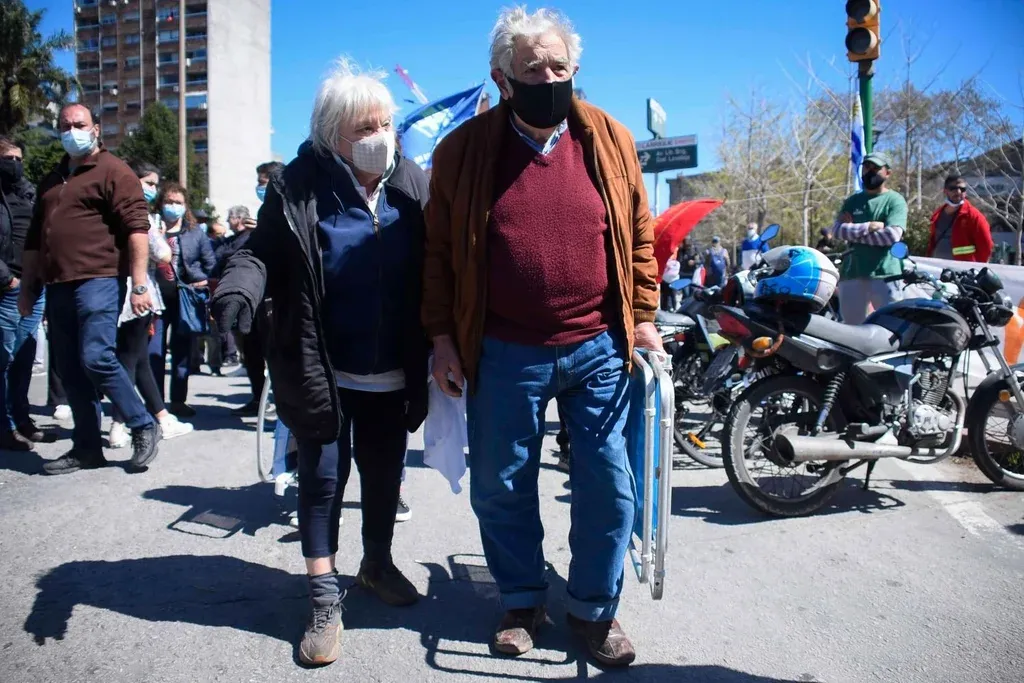 Lucía Topolansky y José Mujica acompañaron la manifestación de este miércoles