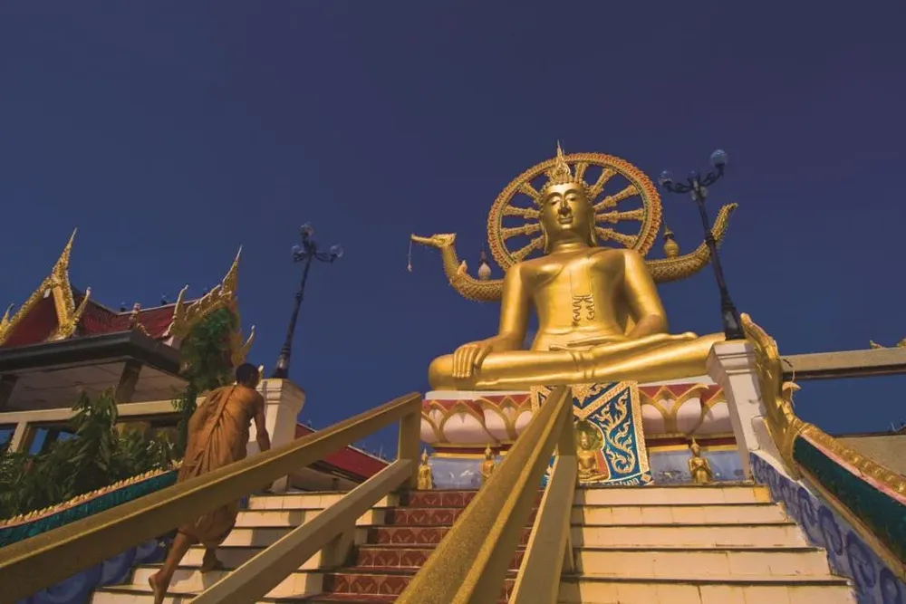 En Asia el dragón no tiene mala reputación. Por el contrario, es un animal justo y que trae fortuna. Estos dragones protegen a una estatua gigante del Buda sentado, además de siete más pequeñas (igual, son más grandes que un ser humano alto) que indican diferentes días de la semana. Según la mitología budista, decir algunas plegarias frente al buda del día en que uno nació trae suerte. Estas estatuas también tienen un pequeño cofre a un lado porque, si se deja dinero, entonces da más suerte.