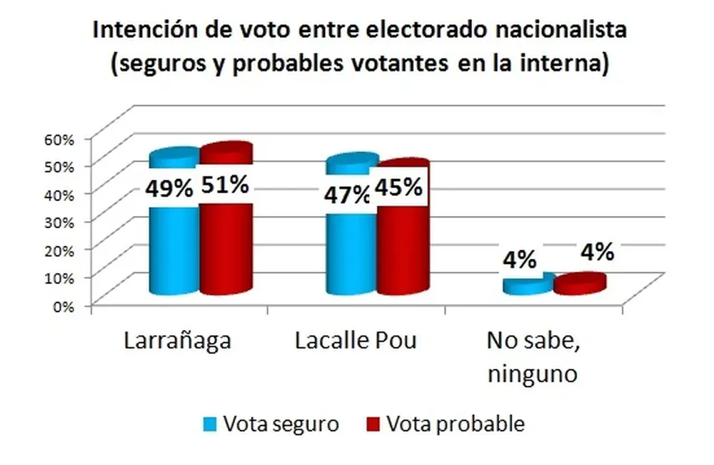 Entre quienes aseguran que irán a votar, Larrañaga y Lacalle Pou empatan