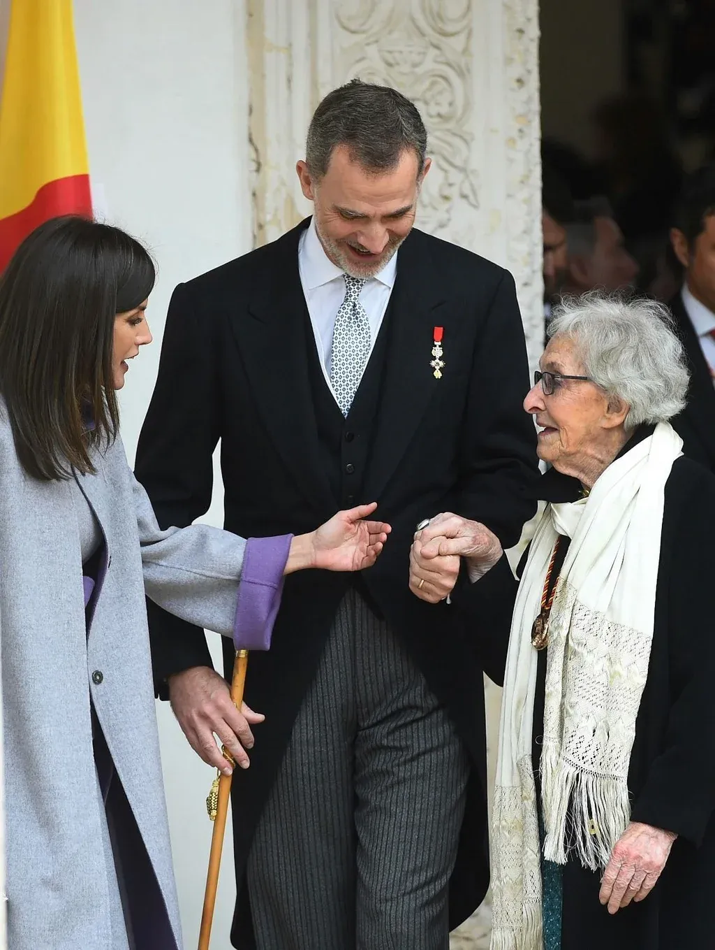 Ida Vitale junto a los reyes de España, Felipe y Letizia
