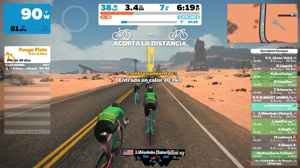 La aplicación Zwift “Lo que buscamos es seguir entrenando juntos pero cada uno en su casa”, dijo Martínez. “Es una forma de motivarnos y acompañarnos en una situación difícil como la que está pasando el país. Entonces queremos seguir generando esa comunidad como cuando salimos a entrenar y todos los ciclistas nos conocemos y nos saludamos, que no se pierda y reforzarla más”.