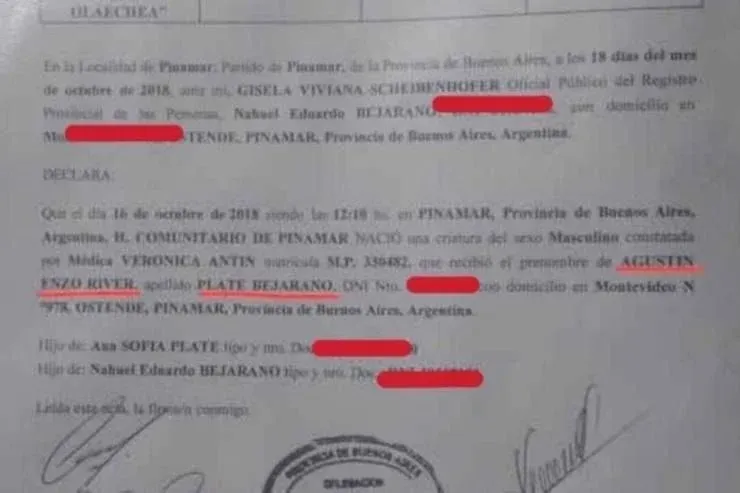 “Hace poco cambió la ley que permite llevar el apellido de la madre antes que el del padre, así que coincidió todo”, contó Agustín sobre la curiosidad del caso. La mamá se llama Ana Sofía Plate, por lo que todo cuadró de manera excelente.