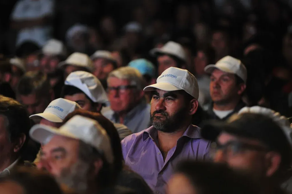 El equipo de campaña puso diez ómnibus para trasladar a espectadores de distintos puntos del interior del país rumbo al teatro Metro. Uno de los asistentes dijo antes de escuchar a Sartori que una de las cosas que le atraían del candidato era “la forma muy a la americana” de hacer campaña