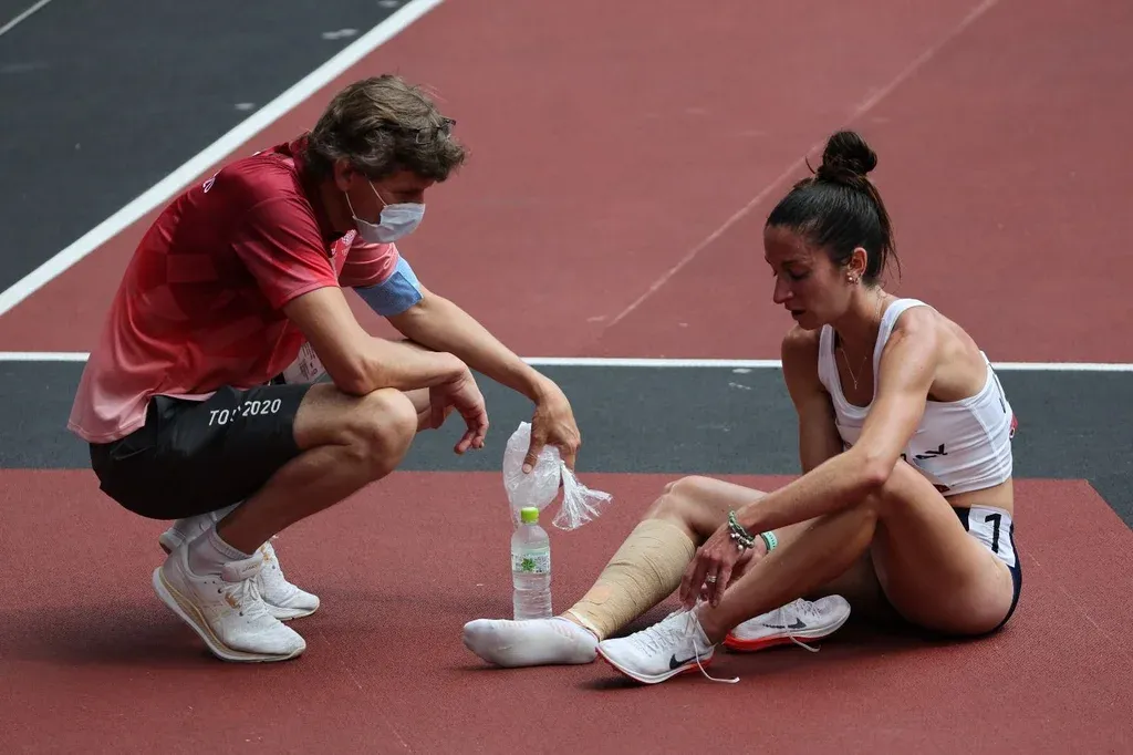 El domingo, en el Estadio Olímpico de Tokio y luego de anunciar que estaba lesionada horas antes de su prueba, salió a la pista sin poder hacer la activación precompetitiva.