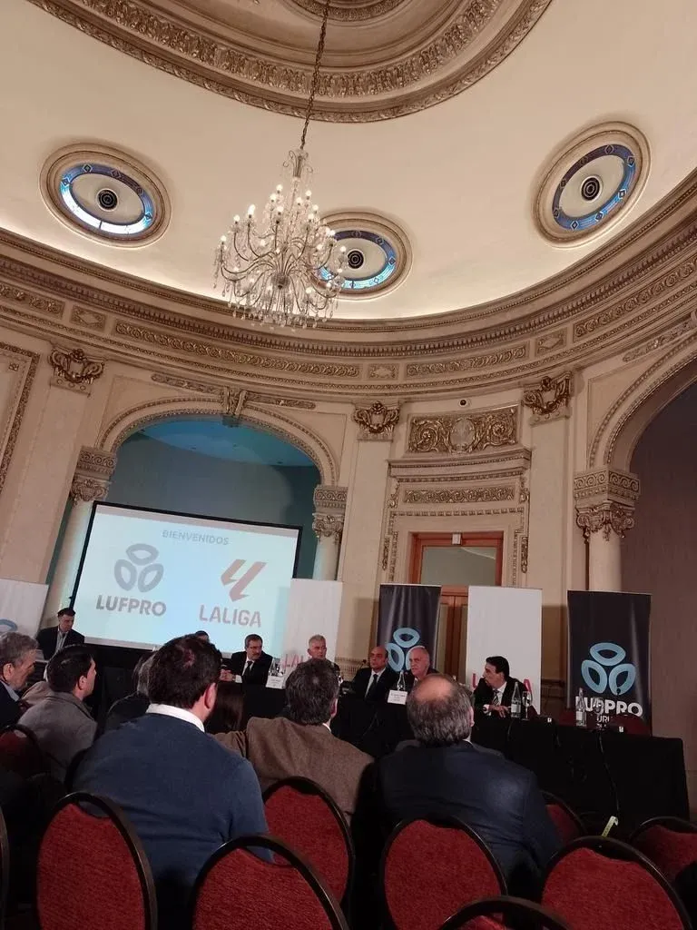 Tebas, quien ya ha disertado en Uruguay en al menos dos ocasiones, una de ellas en 2014 y otra en 2019 invitado por la Secretaría de Deporte que encabezaba Fernando Cáceres, en las que contó el funcionamiento de LaLiga española, que es independiente de la Real Federación Española de Fútbol (RFEF), comenzó su alocución repasando la historia de la entidad que preside desde 2013.