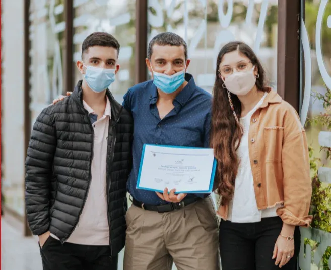 Tafura junto a sus hijos Diego y Agustina el día de la titulación