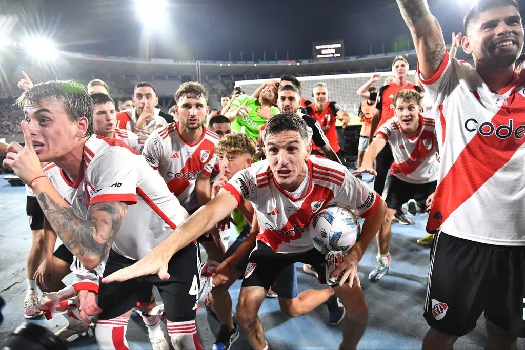 @RiverPlate El festejo de River Plate al ganar la Supercopa Argentina 2024, con Fonseca, Boselli y Sant'Anna Liberado de la tensión de la desventaja, el Millonario fue en busca de la victoria y cuando parecía que se venía la definición por penales, alcanzó el triunfo en un precioso remate de Rodrigo Aliendro (90+1). El jugador había ingresado apenas cuatro minutos antes, y le dio el título a River con un derechazo inalcanzable al ángulo.