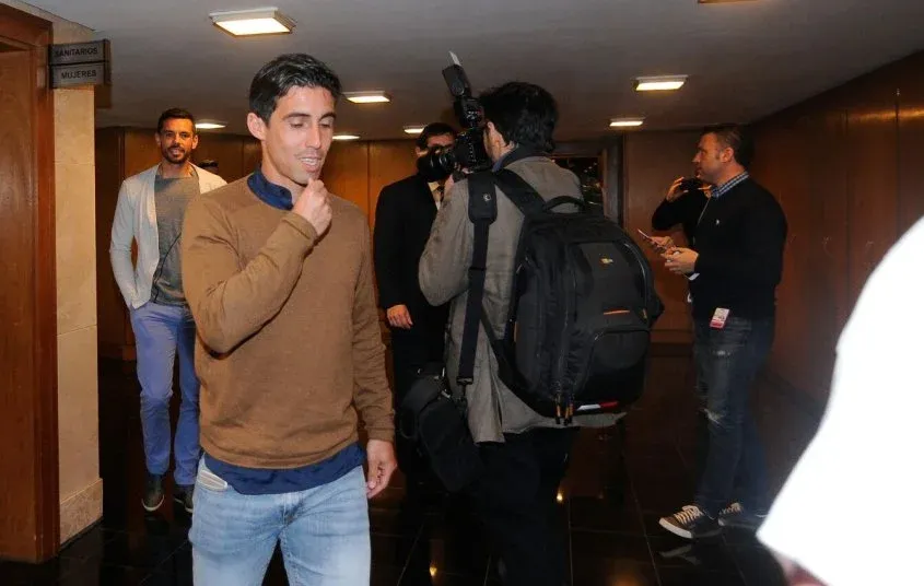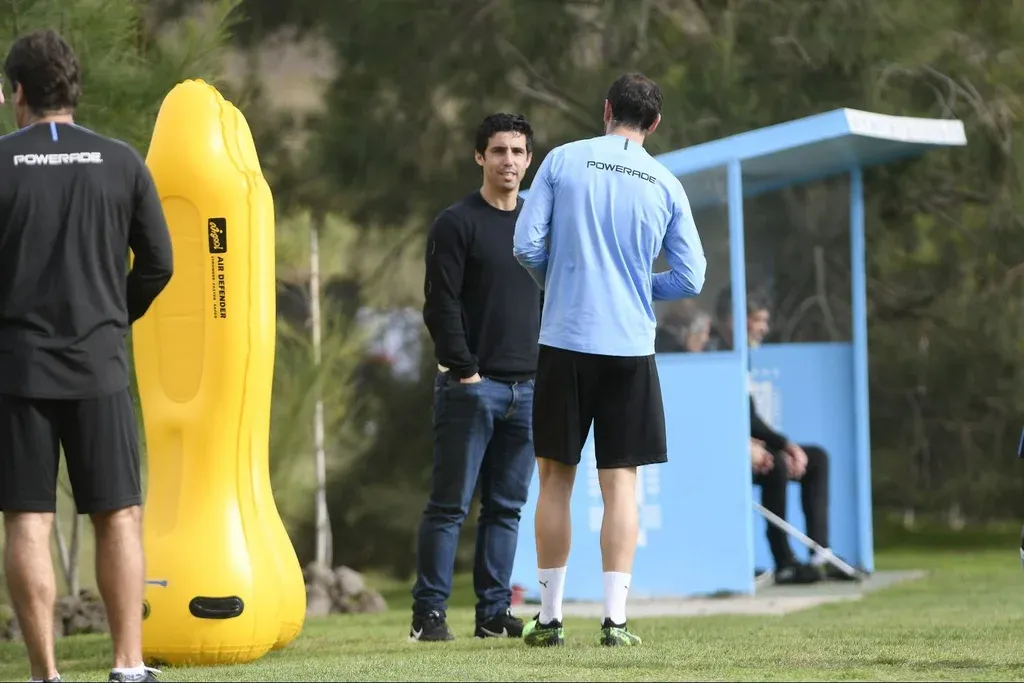Ese día en el Complejo se lo vio con vestimenta formal, junto a los jugadores que fueron llegando a la práctica. Luego, también estuvo junto al capitán Diego Godín cuando éste comenzó a entrenar en la cancha 2.