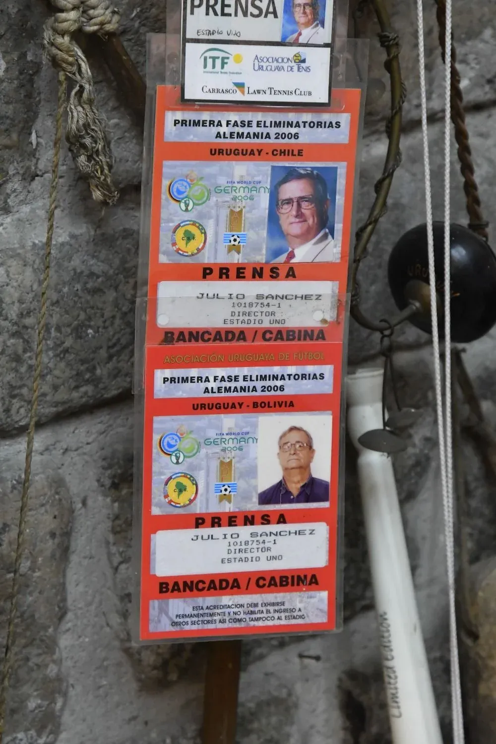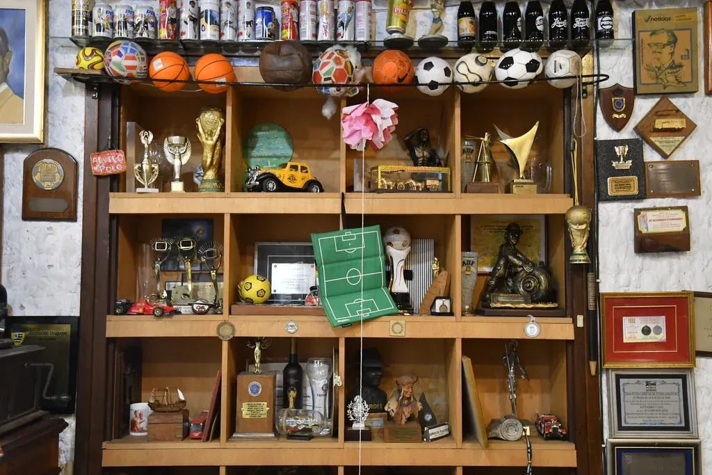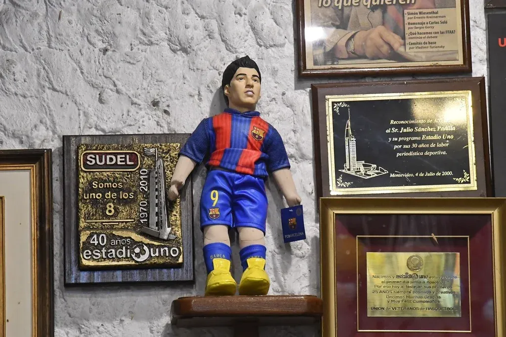 Foto: Leonardo Carreño. El estudio de Estadio Uno Las vidas de Sánchez Padilla y de Estadio Uno, entrelazadas como están, se resumen en esa barbacoa donde se encuentran joyas como sables samurái, plaquetas con reconocimientos, fotos del Maracanazo firmadas por su autor, el primer guion del programa encuadrado, viejas acreditaciones, un poster japonés de la Copa Intercontinental de 1988 jugada entre Nacional y el PSV, y un champán soviético de la década de 1980.