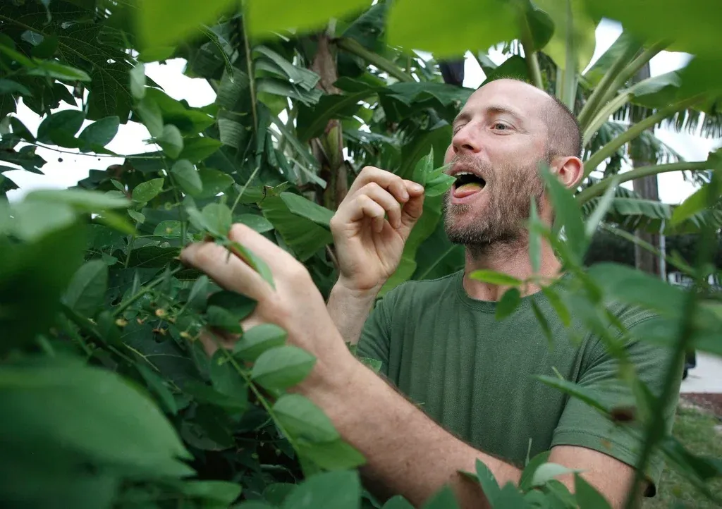 Por un año, ha vivido en el patio trasero de una casa cuyos dueños le permitieron usar el terreno para su proyecto. El jardín, antes un césped bien cortado como el de los vecinos, es ahora una pequeña selva donde crecen frondosamente papayas, yucas, bananas, papa dulce, pimientos, berenjenas, tomates y granadas, entre otros.