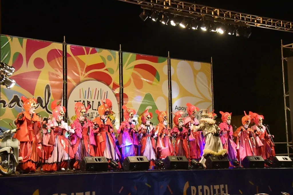 Murga Cayó la Cabra en el tablado de la Plaza 1° de Mayo