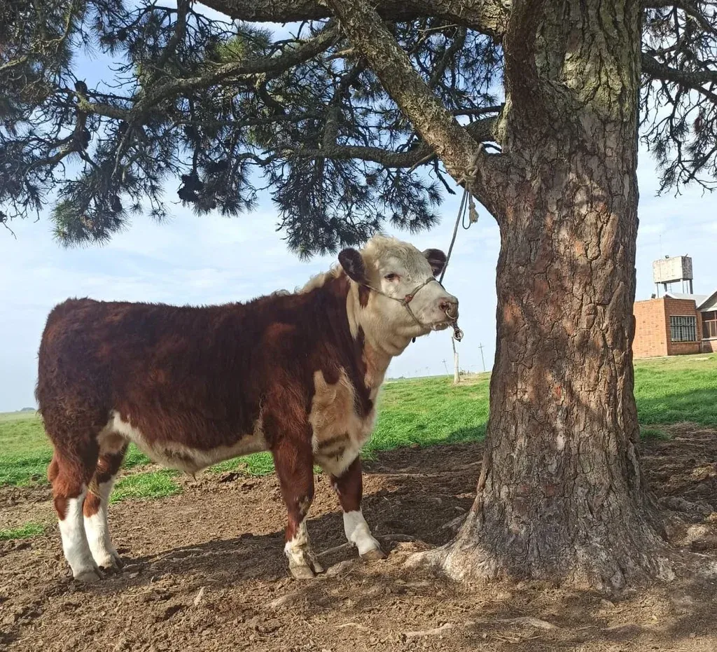 Carolino, uno de los novillos que participarán de la exposición. La raza Hereford le gusta mucho por su mansedumbre, contó, porque los animales son dóciles y no se ponen nerviosos. Según comentó, tiene planes de desarrollarse en la ganadería y le gustaría algún día tener su propia cabaña.