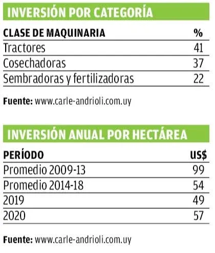 En 2020 la inversión por hectárea creció a U$S 57, superior al año anterior. De todos modos no permitió alcanzar niveles de reposición de inversiones, ya que se ubica en el 70% de los valores estimados por hectárea de depreciaciones de las máquinas.