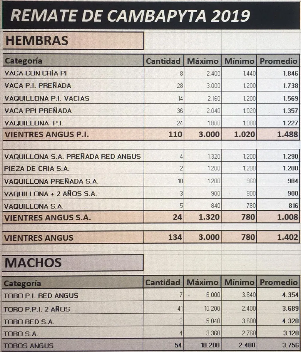 Los 54 toros comercializados en el remate de Camba Pytá, de Mariel Romero, lograron un promedio de US$ 3.756, con un máximo de US$ 10.200.