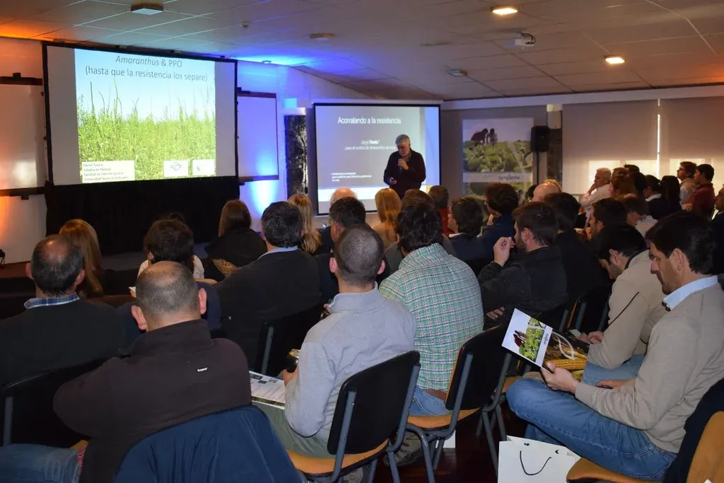El 4º Seminario de Malezas Resistentes, organizado por Syngenta junto con Macció Cultivar, en el hotel Nirvana, en Colonia Suiza y con la asistencia de 120 productores y técnicos, “sirvió para brindar información técnica de parte de diferentes especialistas y en particular el mensaje de que para el control de amaranthus estamos utilizando solamente herbicidas del grupo PPO (fomesafen, flumioxazin, sulfentrazone, etcétera) y que es muy importante rotar con herbicidas que no sean de este grupo”, destacó José Luis Inciarte, gerente de ventas y marketing de Syngenta Uruguay.