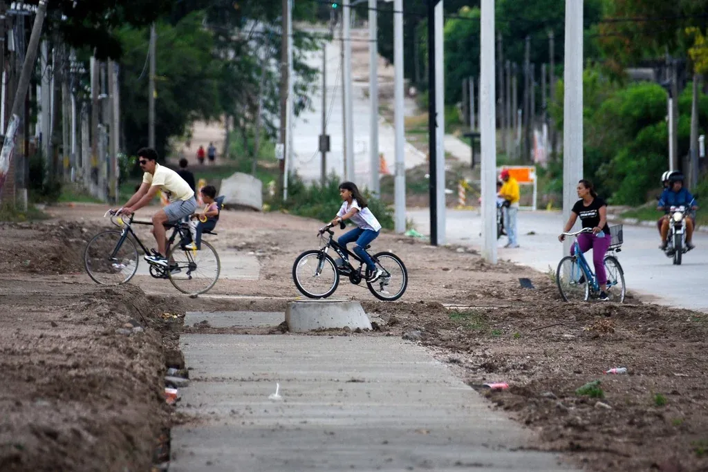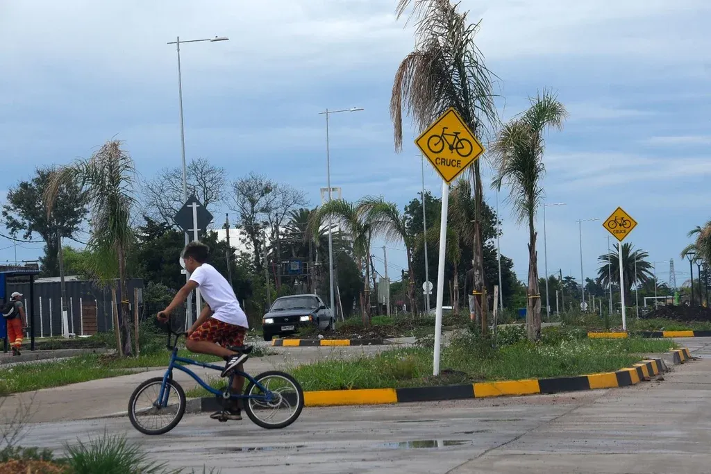 Si bien la arteria ya fue pavimentada, hay cordones y una senda al costado para la circulación de bicicletas, las veredas no están culminadas. La lluvia de la mañana del martes torna la tierra de los costados en barro.