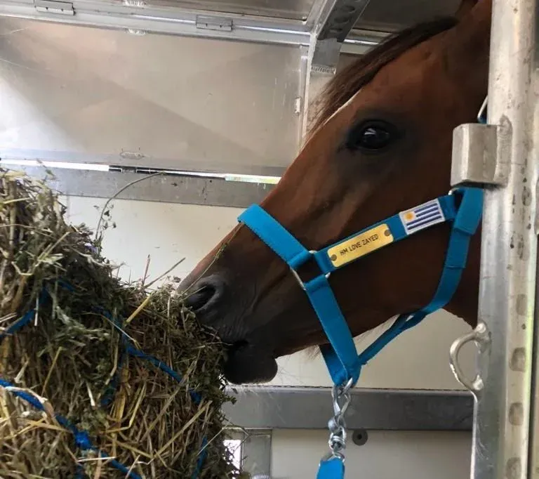 El avión viajó con capacidad completa y en la operativa de carga participaron 35 personas. Con los equinos viajaron cinco personas, cuatro de ellas veterinarios, conformando un equipo profesional que permite una gestión profesional muy bien valorada por los importadores. Uno de esos veterinarios es el propio Olascoaga –integrante de una familia que desde hace años en un complejo próximo a Soca se especializó en la cría y entrenamiento de caballos para uso deportivo–, quien comentó que se lleva un volumen más que suficiente de agua y unos 60 kilos de pasto y 100 kilos de alfalfa para cada contenedor, todo de calidad óptima, “de modo de mantener una buena salud intestinal y que los animales viajen entretenidos”.