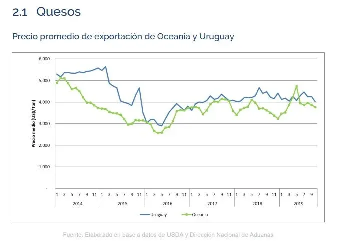 El queso tuvo una caída en la facturación de 13% (US$ 88,1 millones) y un descenso de 12% en volumen (21.022 toneladas), con un precio promedio en octubre de US$ 4.010 por tonelada (9% menos que en diciembre de 2018 y 1% menos comparando los primeros 10 meses de este año con los primeros 10 de 2018).