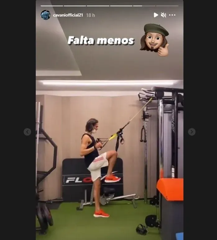 Cavani compartió imágenes de su rutina de ejercicios y escribió: “Falta menos”.