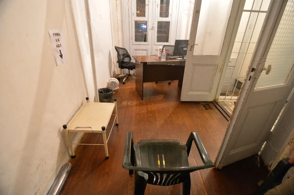 Más allá de los vehículos policiales estacionados y la ronda de cinco agentes del GRT, no hay indicador alguno en la fachada del lugar de que se trata de una Puerta de Entrada a refugios. El dispositivo, a cargo del Ministerio de Desarrollo Social y gestionado en convenio por la organización Plenario de Mujeres (Plemuu), recibe a indigentes retirados de la calle por motivo de Ley de Faltas.