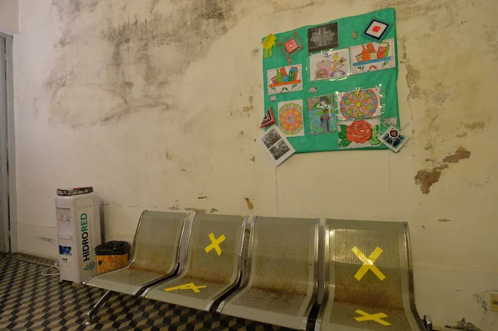 En el punto más álgido de la emergencia sanitaria, el local designado como Puerta de Entrada debió tornarse en un centro de 24 horas para 15 personas en situación de calle que son población vulnerable al nuevo coronavirus. Las huellas de la reconversión aún permanecen en el local, entre dibujos pegados en las paredes, mazos de cartas, una televisión y videos de guitarreadas con cantarolas.