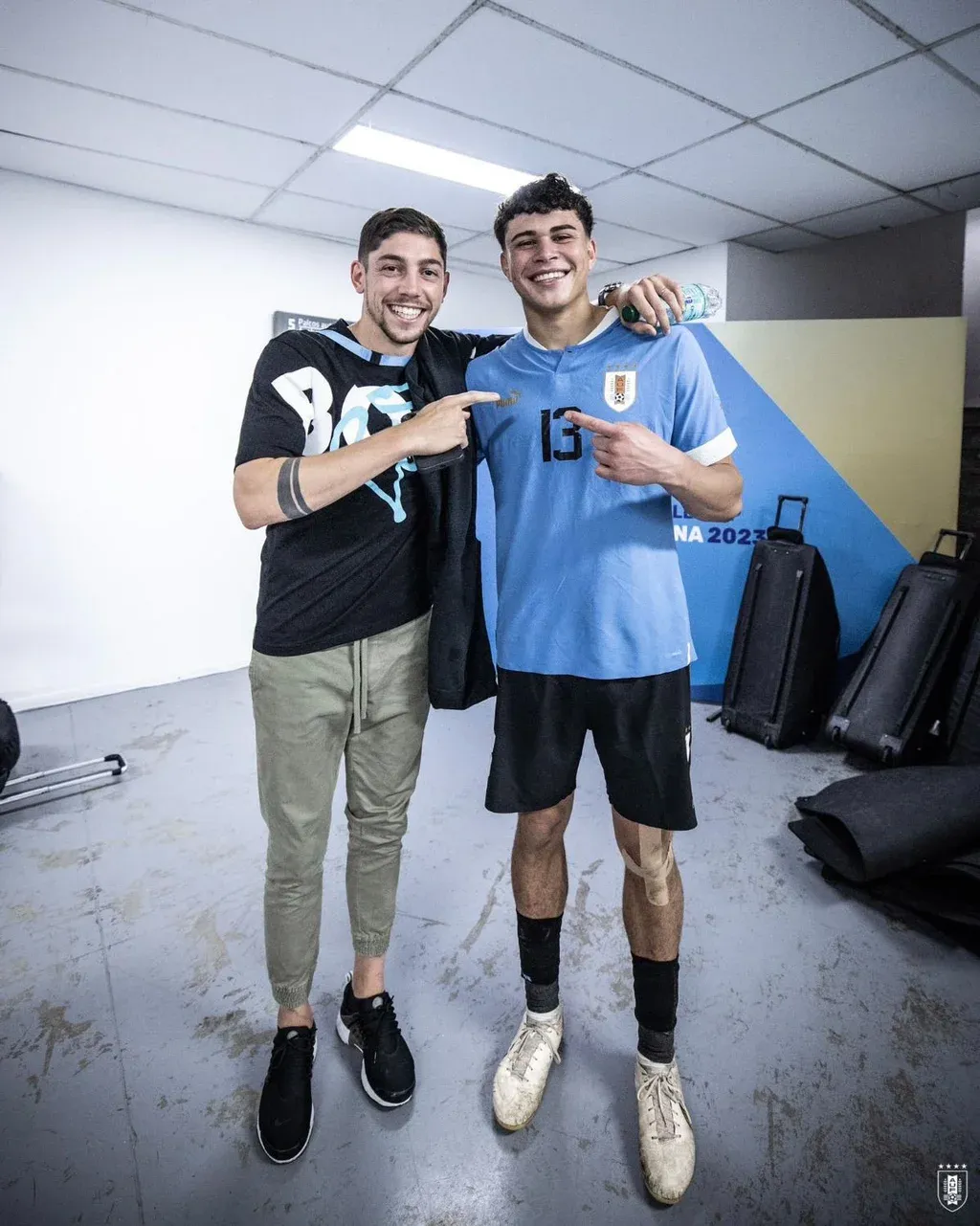 Federico Valverde y Alan Matturro en el vestuario de la selección uruguaya sub 20