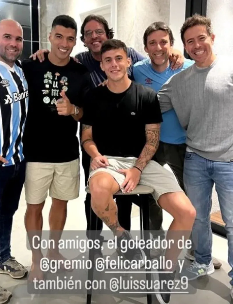 Felipe Carballo celebró el triunfo clásico de Gremio junto a Luis Suárez, Jorge Piñeyrúa, Rafael Cotelo y otros uruguayos famosos