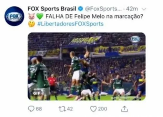 Aquí la publicación en Twitter de la polémica que horas más tarde borró Fox Sports Brasil:
