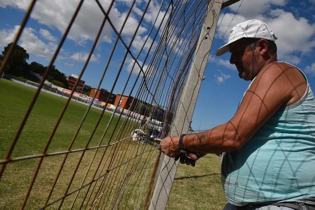 El expresidente Álvaro Chijane emprolijando el césped de la tribuna con una azada, y los dirigentes dando forma a una cancha que el sábado a la hora 16, por la décima fecha del Torneo Apertura, congregará a 800 socios de Nacional y tendrá lugar para 3.000 socios-hinchas de Fénix.