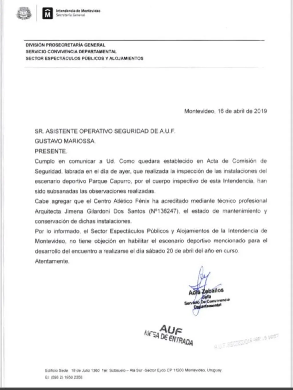 Esa fue la razón por la que todo se transformó en un tsunami de ansiedad y nervios. La inspección de la Comisión de Seguridad de la AUF y del Ministerio del Interior este martes de tarde. La firma de un arquitecto el mismo día al mediodía para extender la habilitación provisoria de la Intendencia de Montevideo al Parque Capurro, que vencía este miércoles.