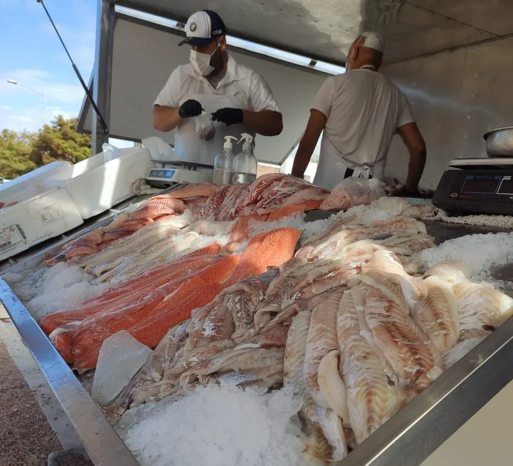 Consultado sobre los precios, mencionó a modo de ejemplo de productos con mucha demanda la corvina especial para hacer a la parrilla a $ 140 el kilo; “el mix de mariscos con camarón, vieira, berberecho, mejillón… con un kilo de $ 380 con arroz por ejemplo da para que coman cuatro personas y eso viene precocido además”; el kilo de merluza a $ 365; y la pescadilla a $ 350 el kilo.