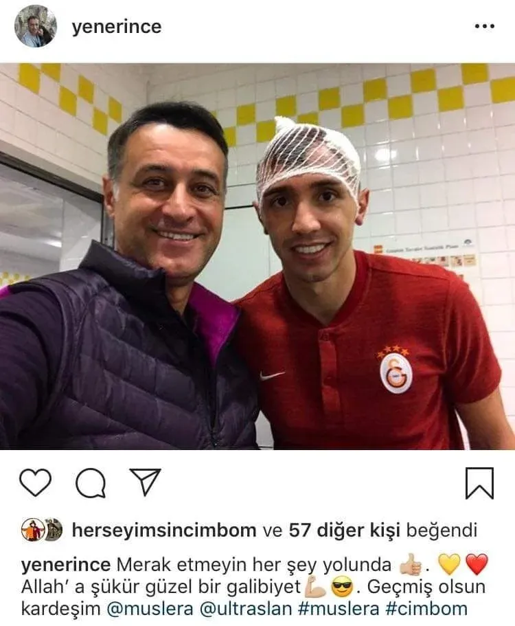Muslera recibió un golpe en la cabeza tras chocar con un rival y después de ser atendido continuó jugando con una venda en la cabeza, pero tuvo que salir a los 90+4 minutos, siendo reemplazado por Ismail Cipe'a. Las informaciones de los medios turcos indican que recibió más de 10 puntos de sutura.