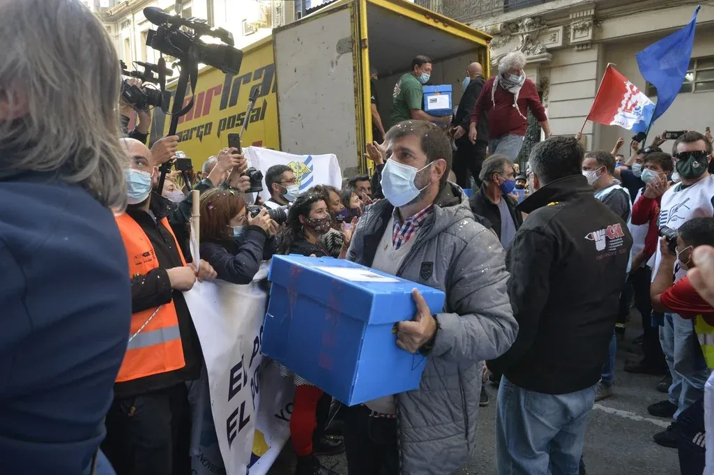Fernando Pereira ingresando firmas contra la LUC a la Corte Electoral