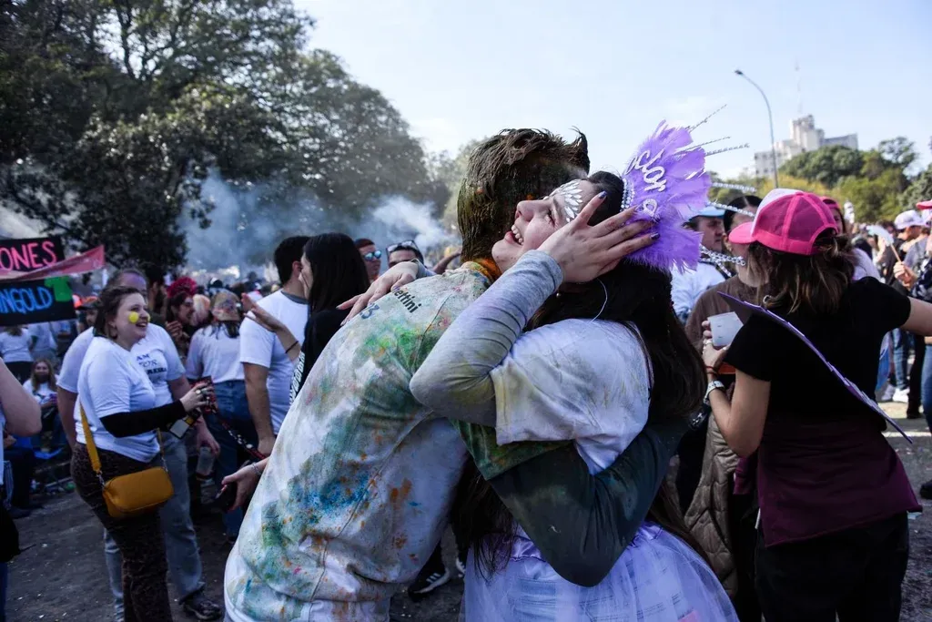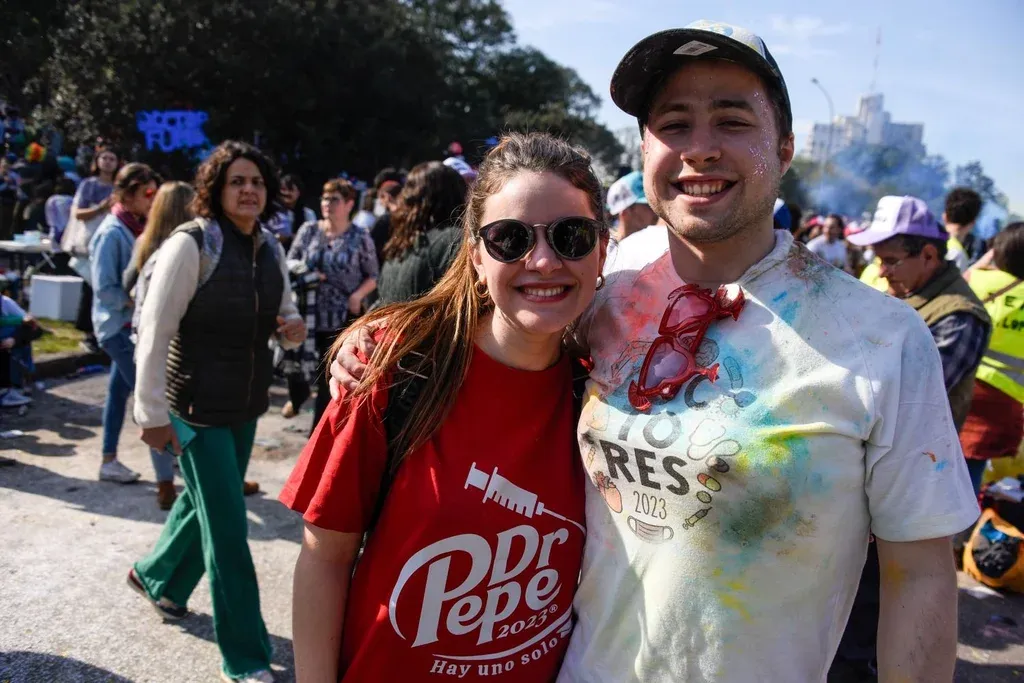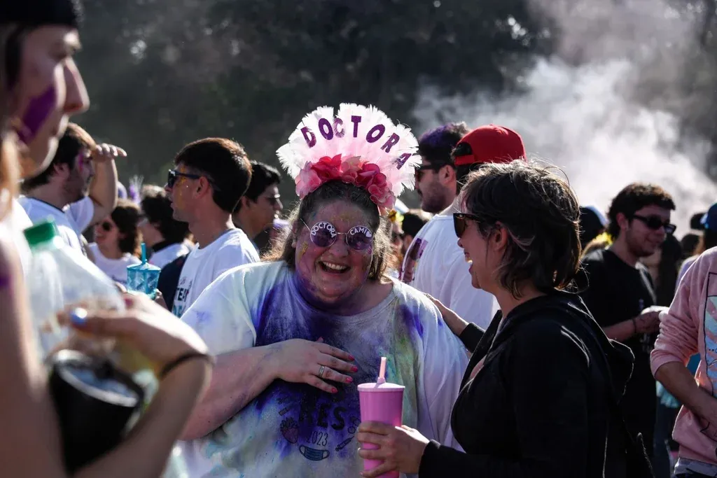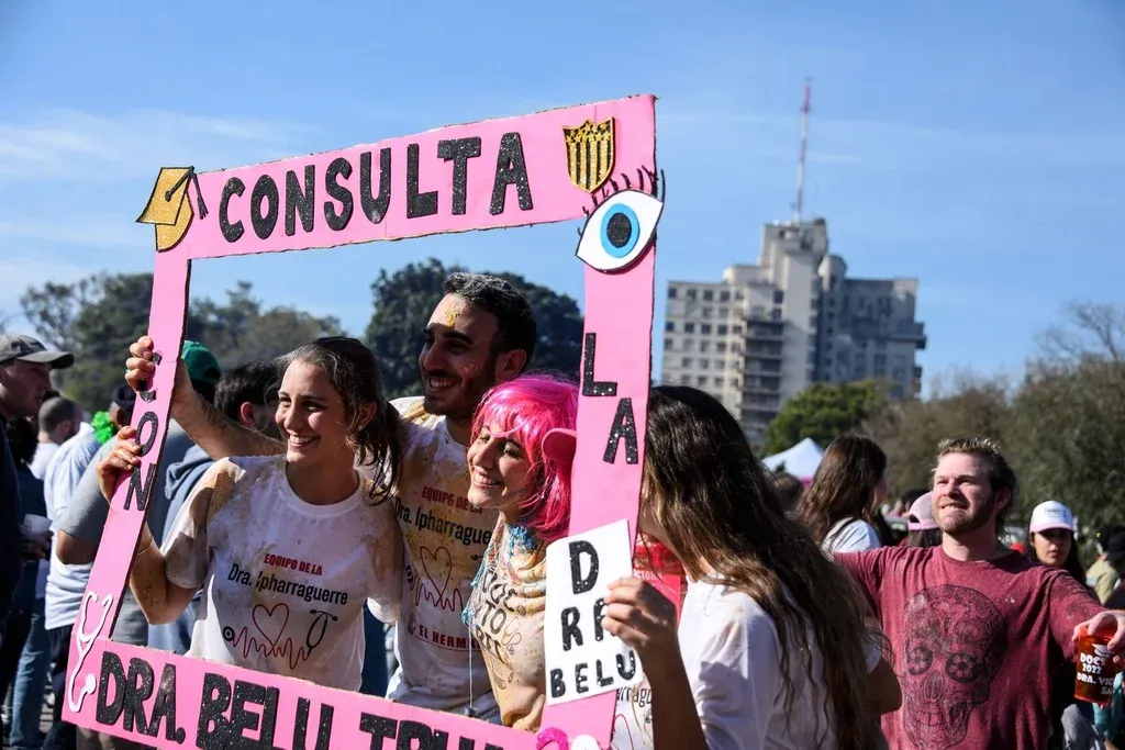 Este lunes, una nueva generación de médicos celebró su título en Parque Batlle con polvos de colores, carteles personalizados, cotillón, un DJ, baños químicos y referencias a Barbie.