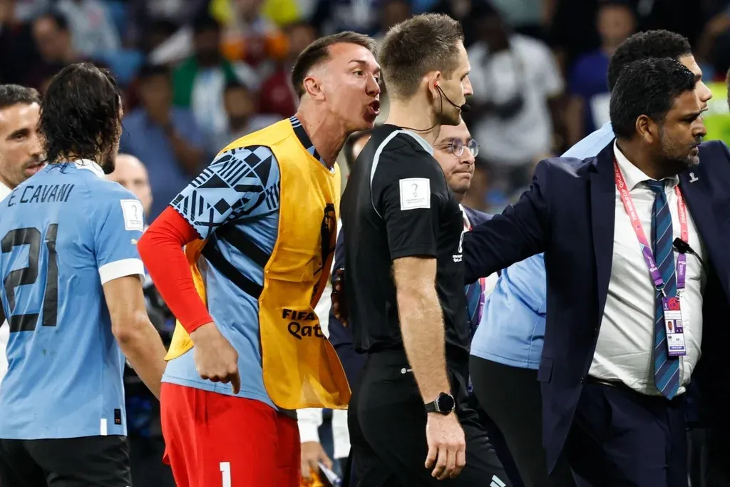 Ello enervó los ánimos en el equipo sudamericano, muy descontento con el arbitraje del alemán Daniel Siebert, que pitó en la primera mitad un penal a favor de Ghana pero luego no concedió los que Uruguay reclamó, especialmente uno a Cavani y otro a Darwin Núñez. En ese último caso, el árbitro había acudido a revisar la pantalla mediante el VAR pero optó por no decretar penal.