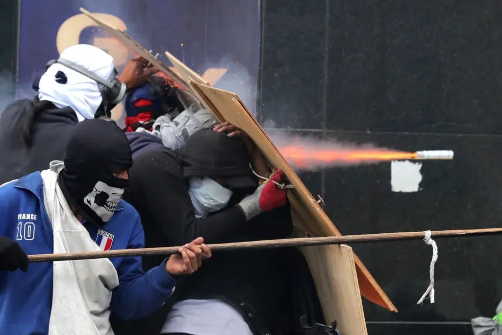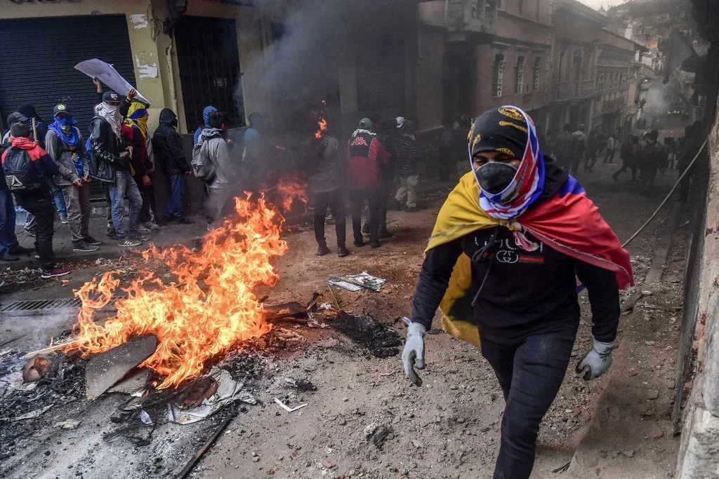 Antes de la imposición del toque de queda, el centro de Quito parecía el sábado una zona de guerra, con sus calles envueltas en humo y repletas de ladrillos tirados. Pequeños fuegos ardían y grupos de personas se escondían detrás de muros y barricadas caseras en busca de protección.