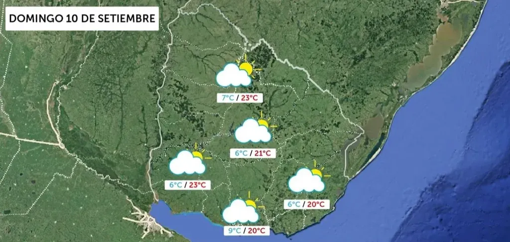 Captura Inumet El pronostico de Inumet para el domingo de setiembre El domingo tampoco se esperan precipitaciones y "el cielo estará mayormente nuboso", añadió la meteoróloga.