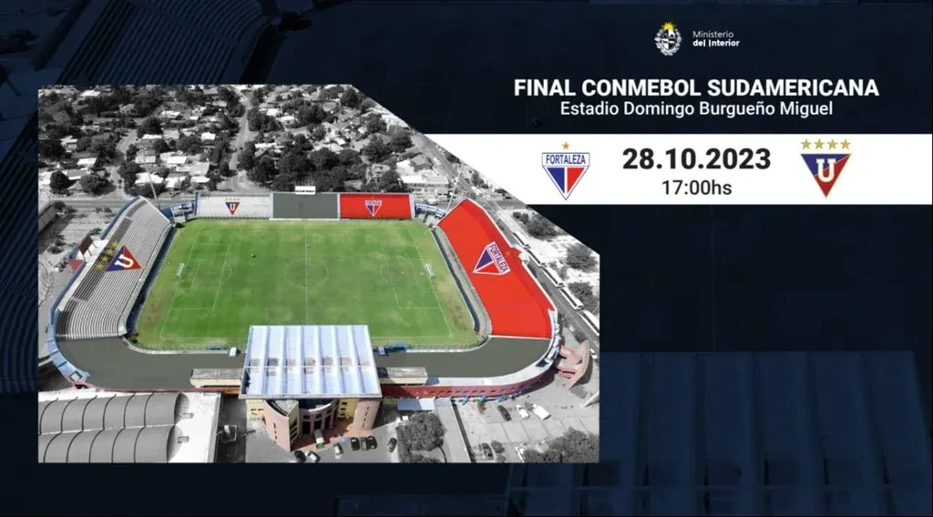 El Ministerio del Interior compartió el operativo de seguridad que aplicará para la final de la Copa Sudamericana del sábado 28 de octubre, que disputarán Fortaleza y Liga de Quito en el estadio Domingo Burgueño Miguel de Maldonado.