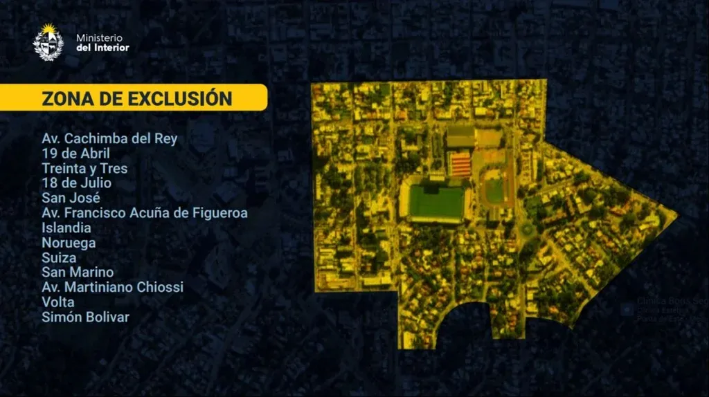 La zona de exclusión comprenderá varias manzanas, en un radio delimitado por las calles Cachimba del Rey, 19 de Abril, Treinta y Tres, 18 de Julio, San José, Francisco Acuña de Figueroa, Islandia, Noruega, Suiza, San Marino, Martiniano Chiossi, Volta y Simón Bolivar.