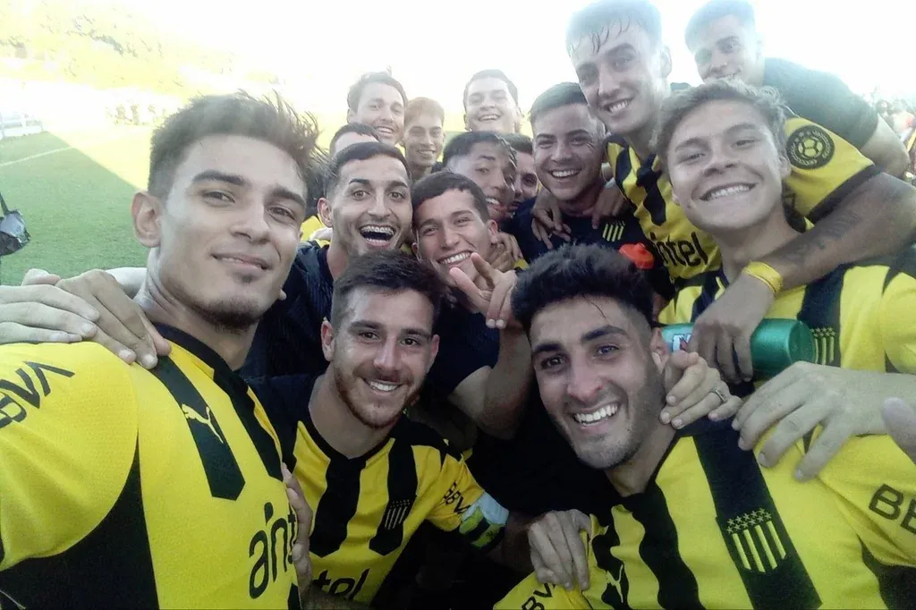 El festejo de los jugadores de Peñarol tras el clásico de la cuarta fecha